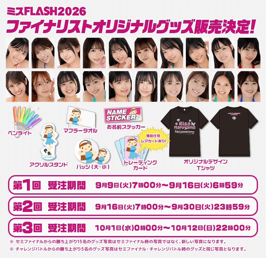 ミスFLASH2026選考オーディション ファイナリスト オリジナルグッズ販売のお知らせ