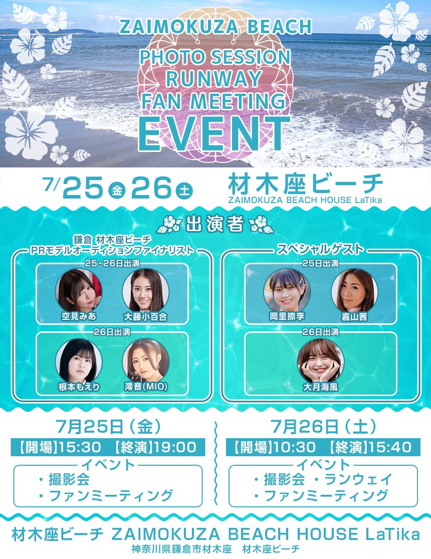 7月25日(金)・26日(土)材木座ビーチイベント~撮影会・ランウェイ・ファンミーティング~開催!
