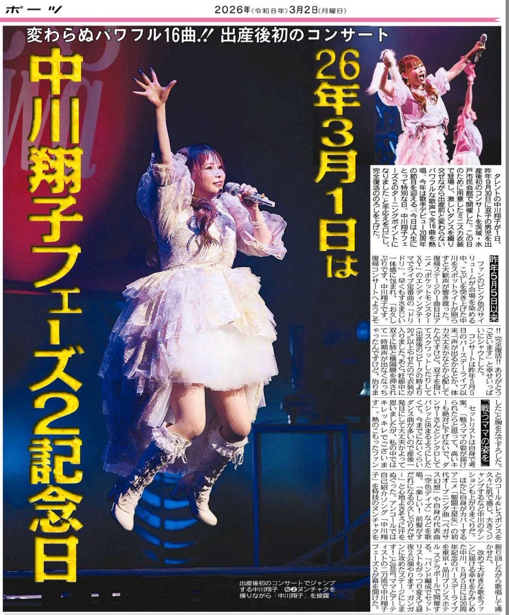 RT @shoko55mmts: トーチュウさまが 水戸ライブの素敵な記事を書いてくださっています!ありがとうございます!! 東海北陸地区発行の中日スポーツは、紙面が購入できます! #しょこたん水戸ライブ https://t.co/hTYNNI8KGj