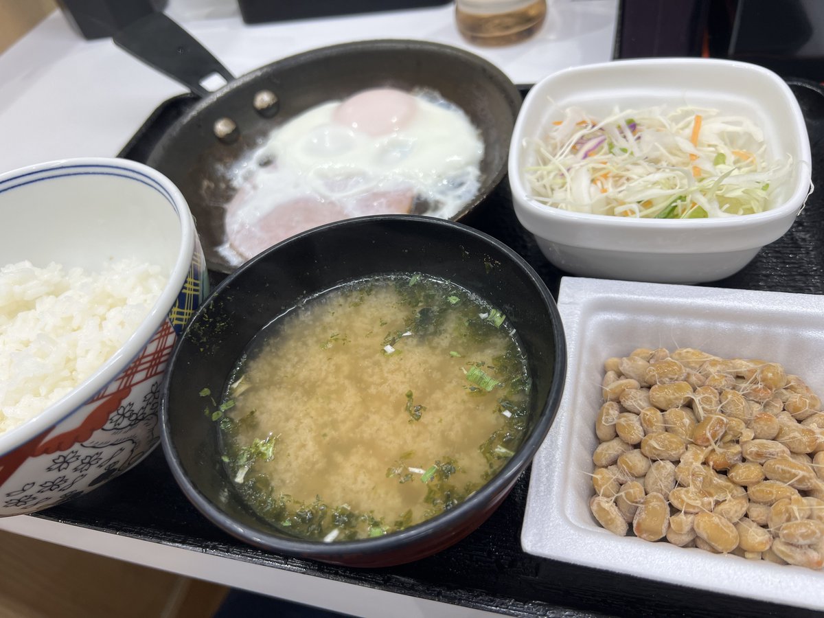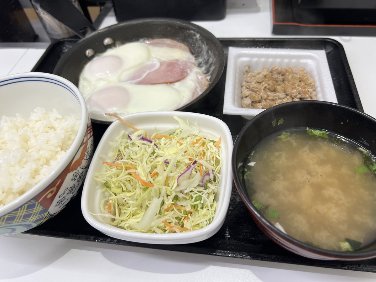 今日はWハムエッグ定食🍳