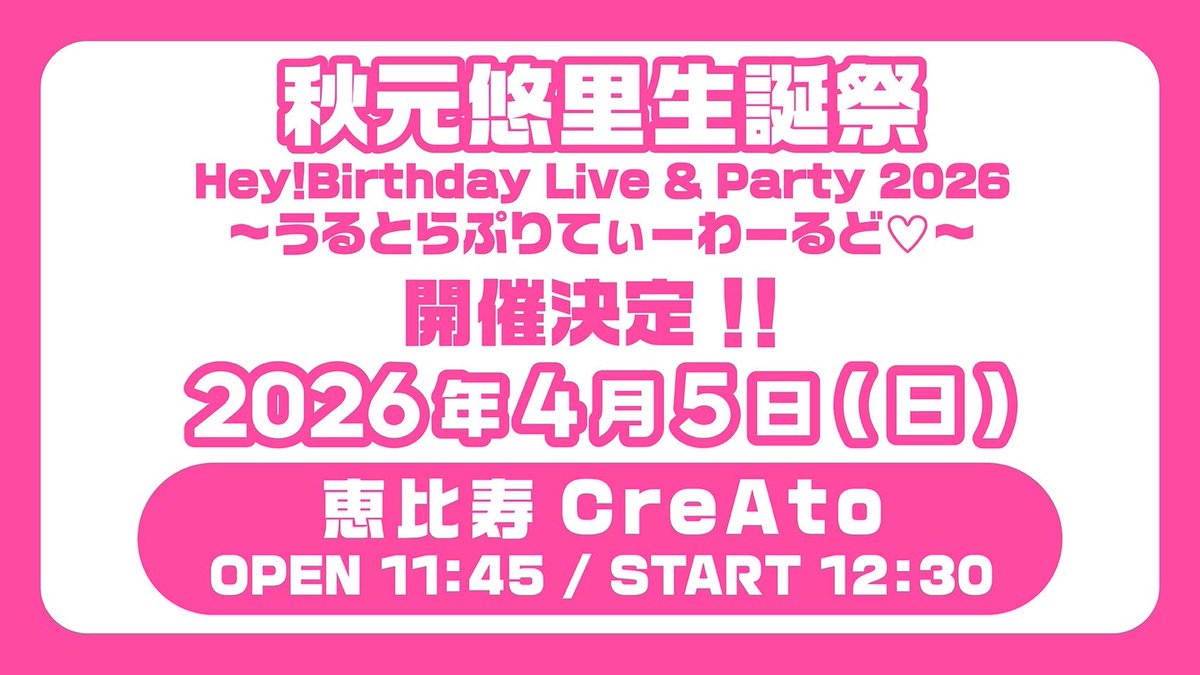 次の生誕、自分だと思うとめっちゃドキドキしてきた!!!😂💓 ゆうりらしい、うるとらぷりてぃーわるど♡で楽しませるので4/5のお昼は恵比寿で!!!!きまり!!!!🐰✊🏻✊🏻✊🏻 https://t.co/8TwUgYRqYq