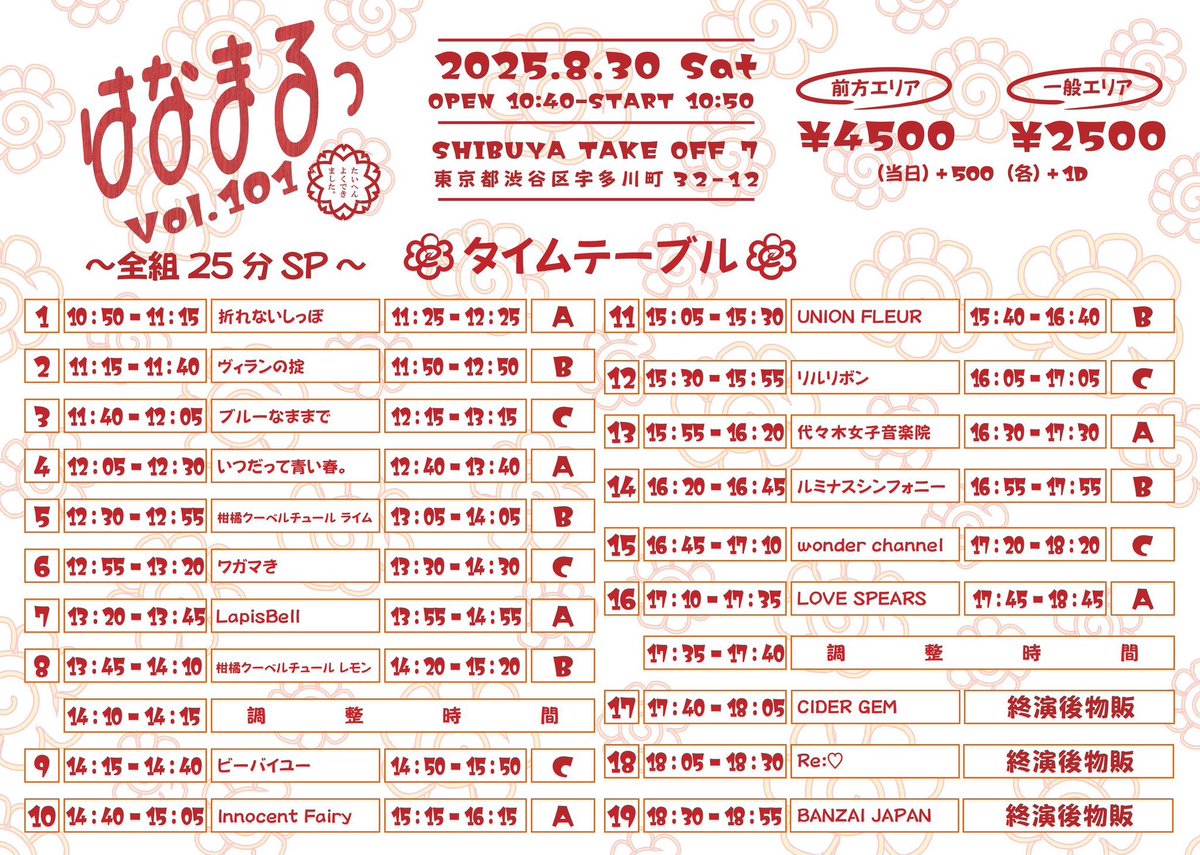 8/30(土)2現場‼️ ⭐️通し特典:チェキ券1枚⭐️ 『はなまるっ Vol.101~全組25分SP~』 🏰渋谷TAKEOFF7 🎤11:40~12:05📸12:15~13:15(別会場 C) [特典会 別会場] 東京都 渋谷区 道玄坂2-9-9梅原ビル 6F SPACE-600 レンタルスペース シブヤ・ネクサス 🎁トーク付き写メ券1枚 🎫https://t.co/uQbKXXmJV0 https://t.co/UW1OnTSUSa