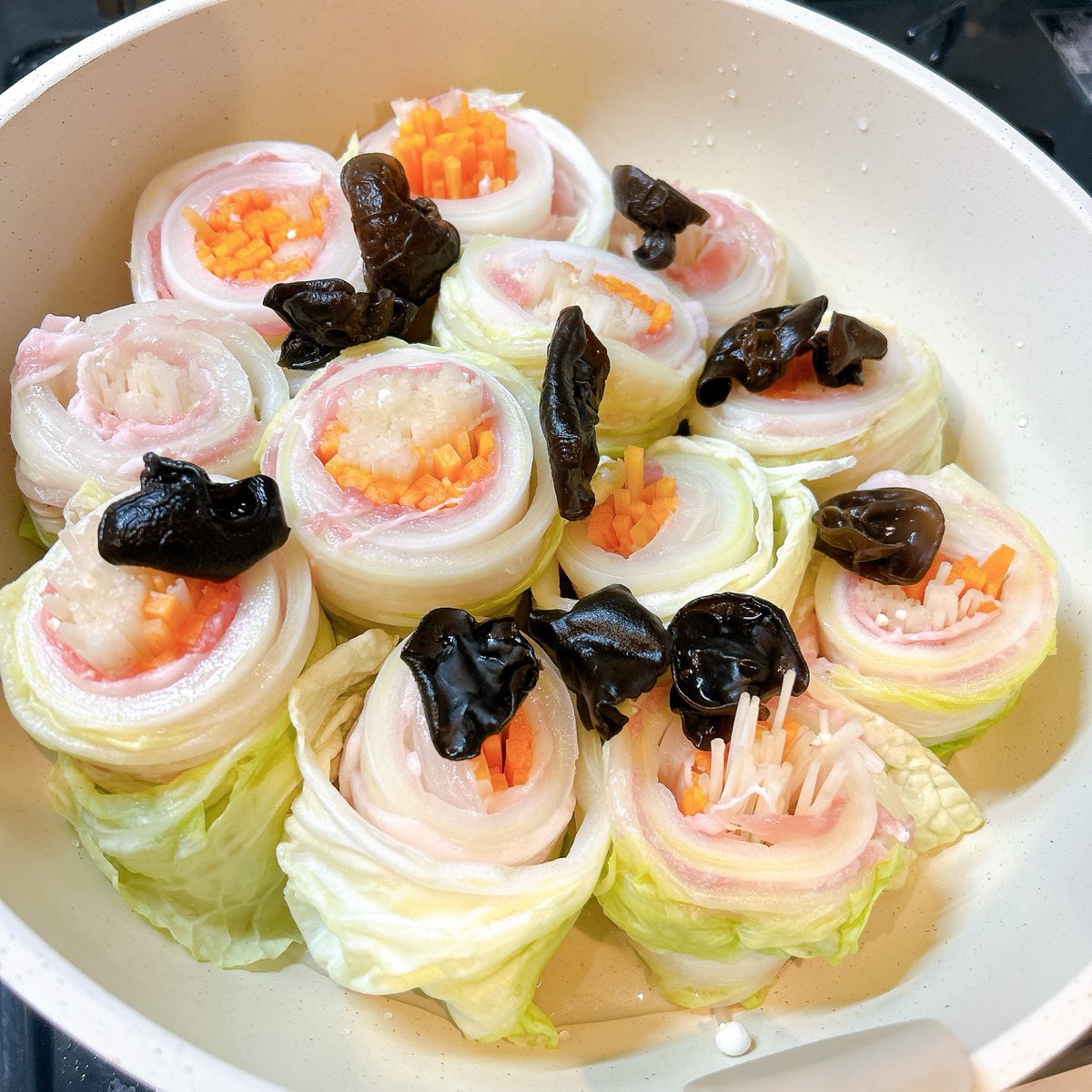 ミルフィーユ鍋的なやつ キクラゲ好きだから、無理に入れたらちょっと見栄え悪くなった笑 マーラータン風にして美味しくできました👌🏻👌🏻 https://t.co/2MxevqCEot