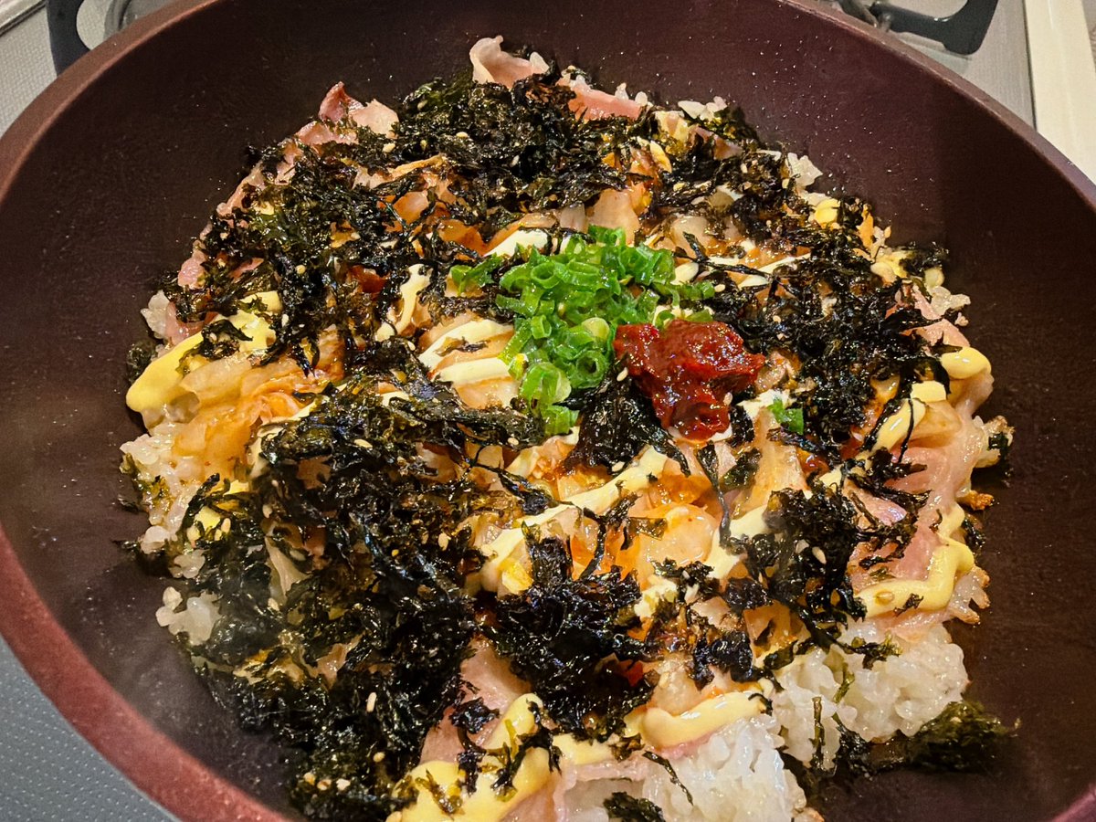 おはにょろ~☀️💪🏻( ・∇・)🍤 寝不足気味に😪もう少し寝たい…! 夢も忙しかったー!笑 事件に巻き込まれて新聞の一面に…みたいな🤣 どこからそんな発想来るんだ脳みそくん…! もくもくもくよーび✨ゆるふぁーい!✊ ワンパンビビンバ!🍚 ご飯キムチマヨネーズベーコン海苔ネギ! お焦げが美味~🥰 https://t.co/umVwcqMPuU