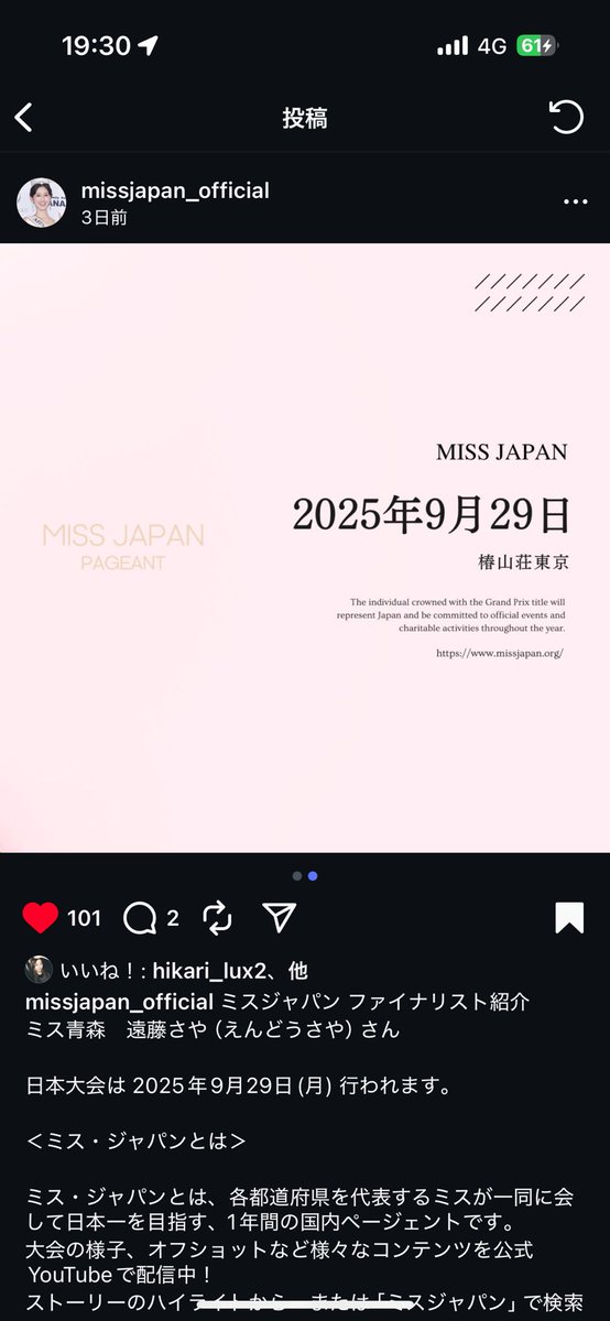 この度、ミスジャパン青森大会グランプリをいただき、青森県代表として日本大会に挑戦します👑💐 祖母の故郷・青森県を背負って、外見だけでなく内面も美しく成長できるよう努力してまいります。 日本一を目指して頑張りますので、応援していただけたら嬉しいです! 📍日本大会は 9月29日 @椿山荘 https://t.co/4btDgsTYCo