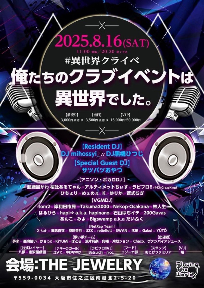 RT @djmihossyi_ptw: \明日16(土) #異世界クライベ /
