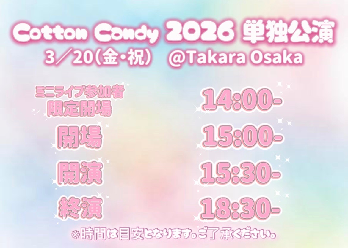 Cotton Candy単独公演のタイムテーブルを発表いたします✨
