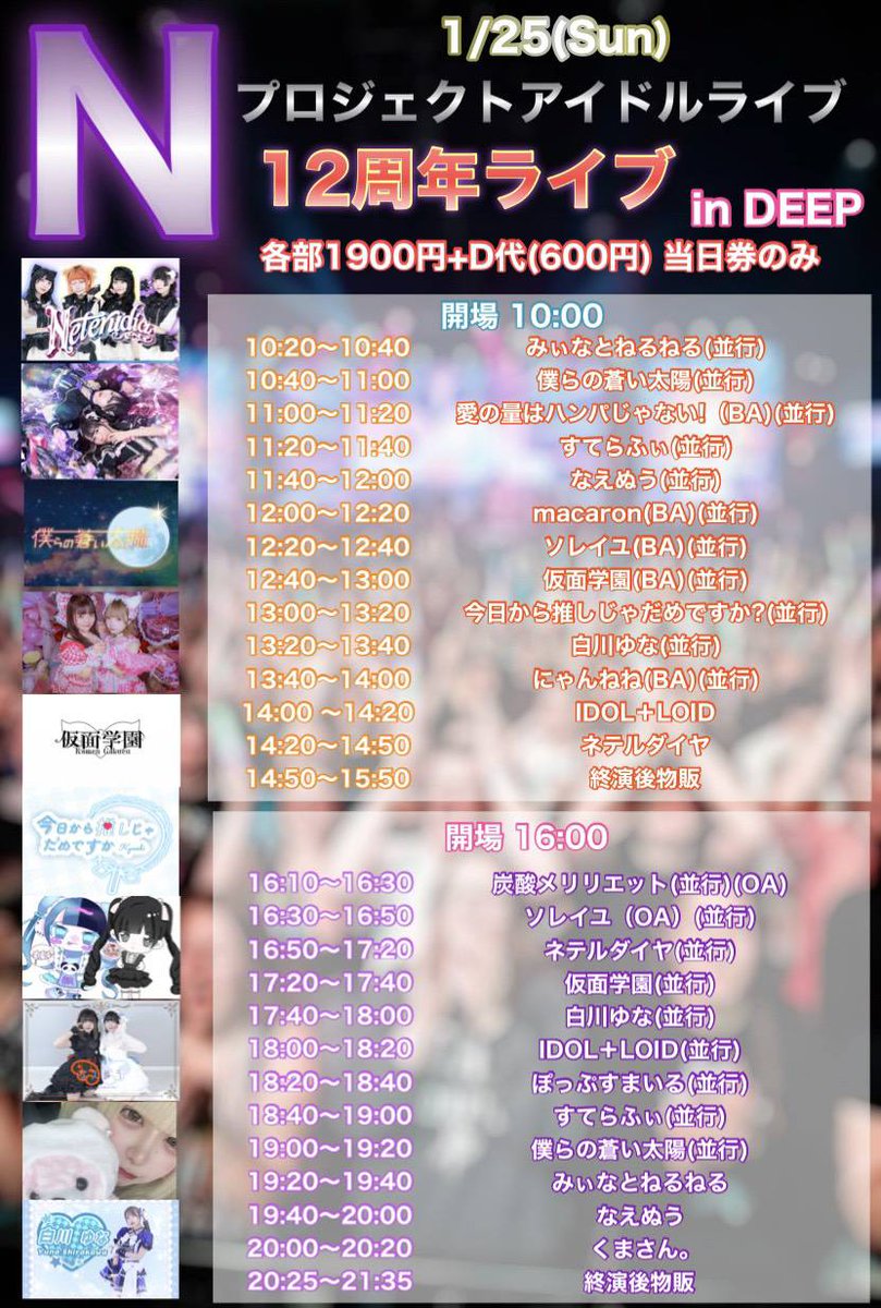 RT @happycoming113: 1月25日日曜日 栄 DEEP Nプロジェクトアイドルライブ 12周年ライブ 詳細になります 当日券のみになります お気軽にお立ち寄りください お待ちしてます https://t.co/GQbMVDCoyr