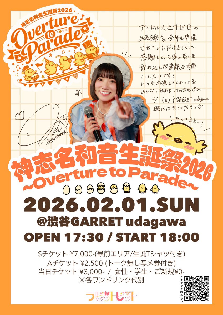 本日Birthday Girl🧡 のんちゃんの生誕祭は2月1日、今週の日曜日ー!!✨️ 一般チケ発売中です! みんなでお祝いしようね🥰 2/1(日) #神志名和音生誕祭2026 🎂 🐣~Overture to Parade~🎉 📍渋谷GARRET udagawa ⏰OP17:30/ST18:00 🎫 https://t.co/DOKIQG4878 https://t.co/cbZOee5PNq https://t.co/Zwe651ZZSJ
