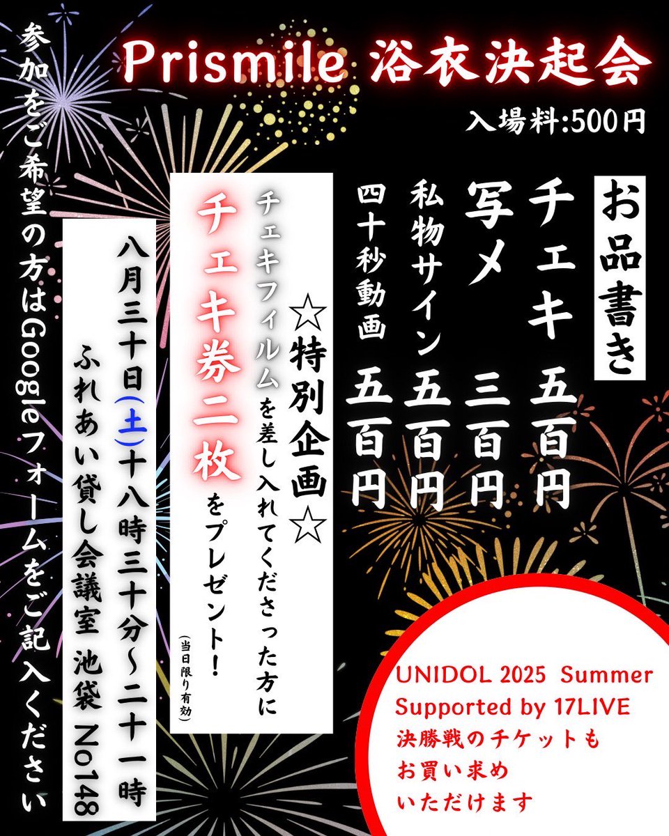 8/30(土)に行われるPrismile浴衣決起会の