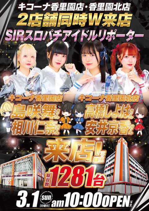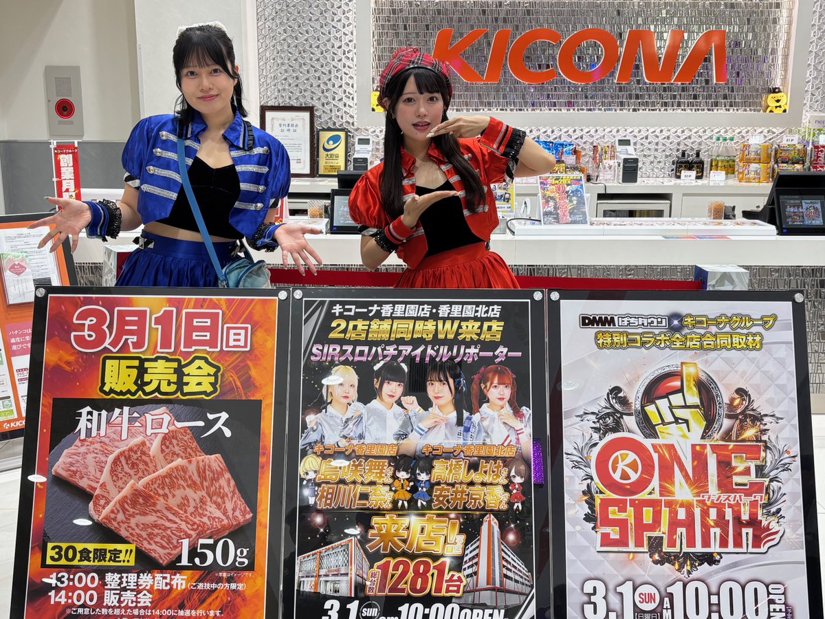 RT @kicona_kourien: こんにちは😀 3月はキコーナの創業月間になります! ✨3月1日は香里園店&香里園北店✨ 2店舗合同でSIR(スロパアイドルリポーター)さん来店になります! さらに本日は ワンスパーク&和牛ロースの販売会も実施しております!! この後の…