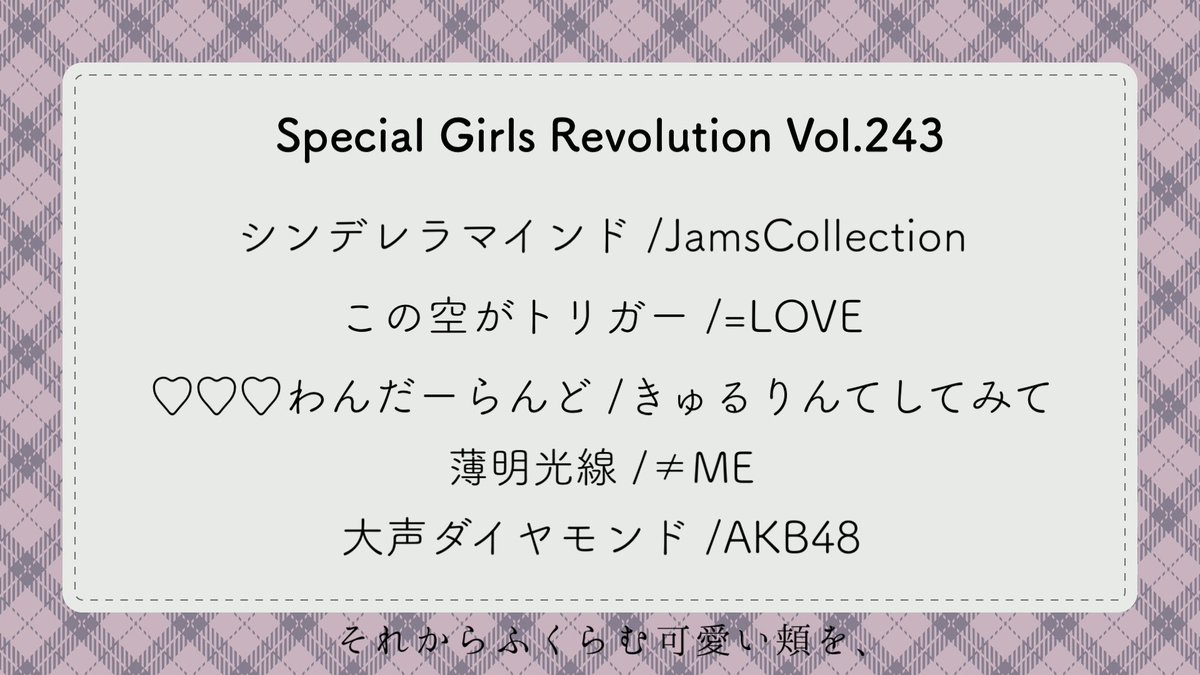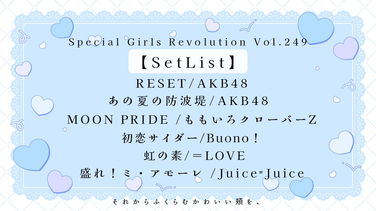 2/25のSpecial Girls Revolution Vol.249のセットリストを公開します✨
