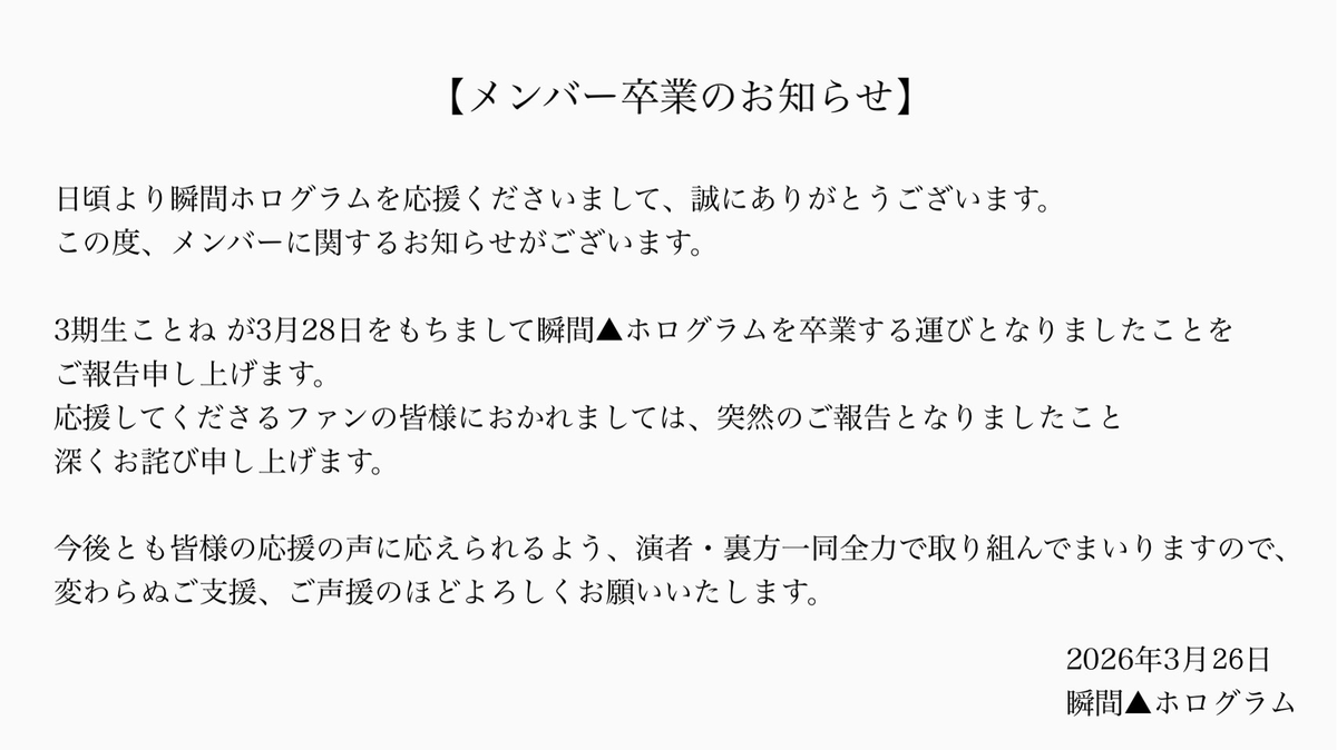 【3期生ことね 卒業のお知らせ】 https://t.co/qRgavzJsR6