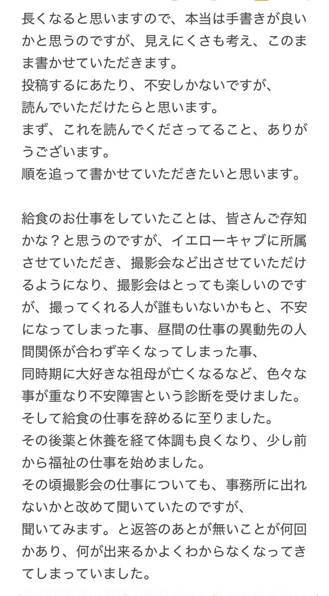 皆さま、お久しぶりです。 お元気してますか? ずっとなにも更新せずに月日が経ってしまい、申し訳ありません。 応援して下さってきた皆さんにきちんと伝えたいし、伝えなければいけない事、今の気持ちなど書かせていただきました。 画像に続かせていただきます。 https://t.co/K2mxA65fKh