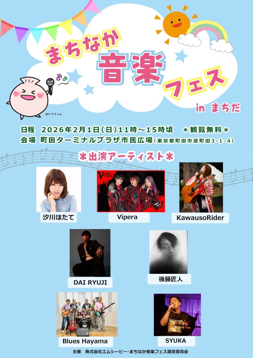 【2月1日(日)】😈🐍 「まちなか音楽フェス inまちだ」 🏢町田ターミナルプラザ市民広場 🎫 観覧無料 🐍 出演時間 11:55~ ※優弥&未来で出演致します。 https://t.co/EFtYsGyJaX https://t.co/Aj6S5BMte6