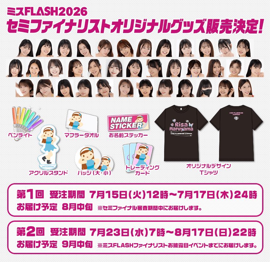 ミスFLASH2026選考オーディション セミファイナリスト オリジナルグッズ販売のお知らせ