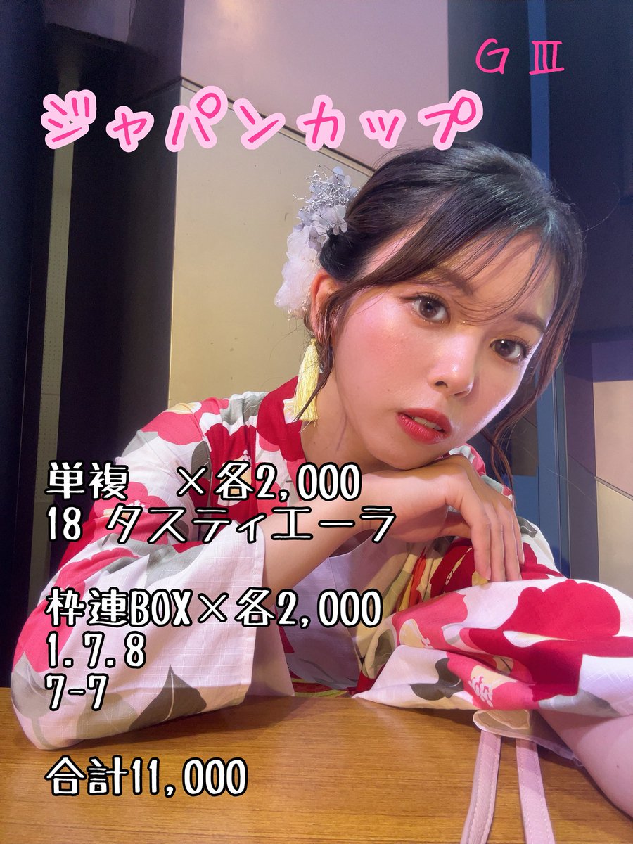 理依奈の競馬予想🏇♡ いつもウマバラ応援ありがとう! 久しぶりに競馬予想出します!! #ジャパンカップ 持ちポイント 138,810pt▶︎11,000pt使用 #ウマバラ #マシェバラ #競馬女子 https://t.co/BP8mtFZsQd