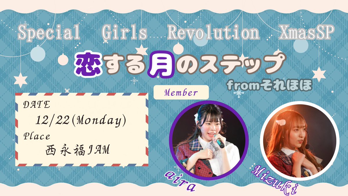 【出演情報】📣 12/22(月)に西永福JAMで行われる Special Girls Revolution 2025 XmasSP4 Vol.4にそれほほが出演します🩵 チケット予約は本日21:00より開始します🎫 出演メンバーは11/24の単独ステージ後に公開です❣お楽しみに✨ https://t.co/lCjzNEuCM6