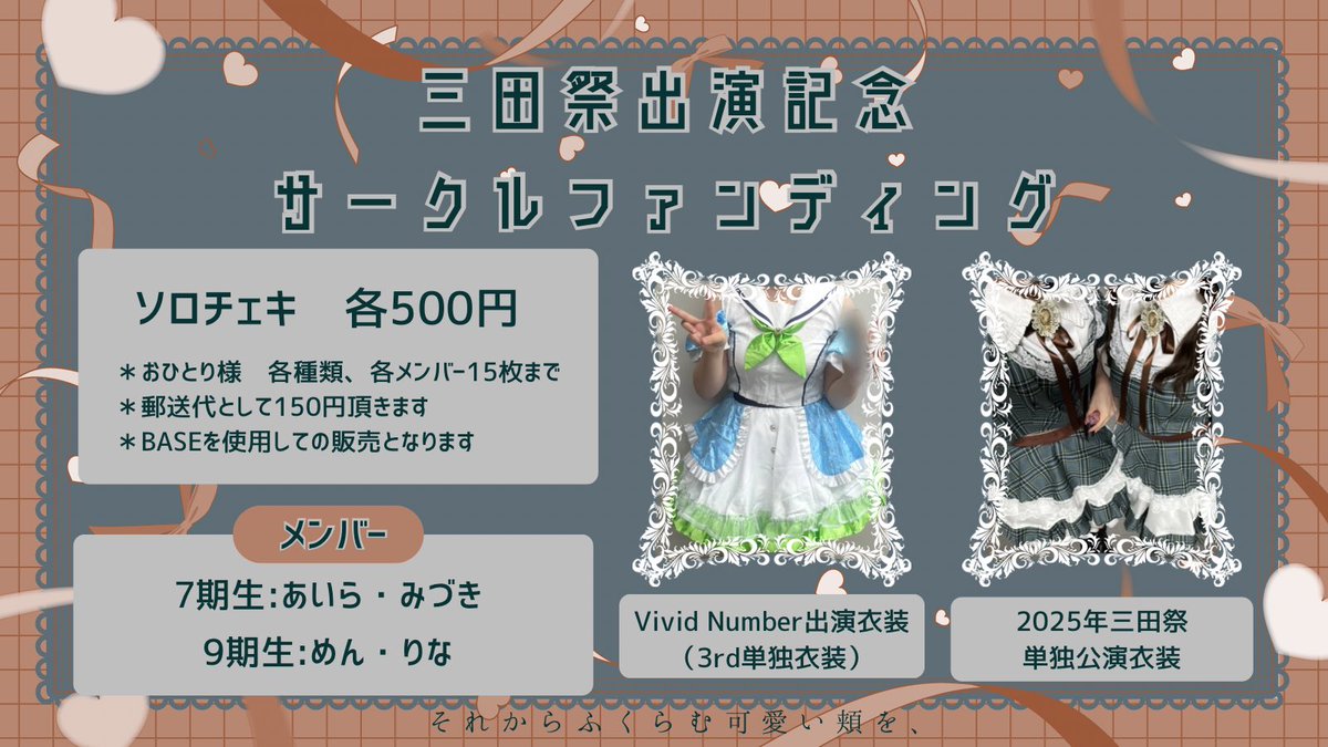 💚チェキ販売🍁 三田祭出演を記念してチェキ販売を行います! 今回は2種類ご用意があります❣️ たくさんのお申し込みお待ちしております✨ 🔗お申し込みはこちらから https://t.co/ttb4KiwrVm ⚠️締切は 12/13(土)23:59まで⚠️ https://t.co/M70mvYKR2S